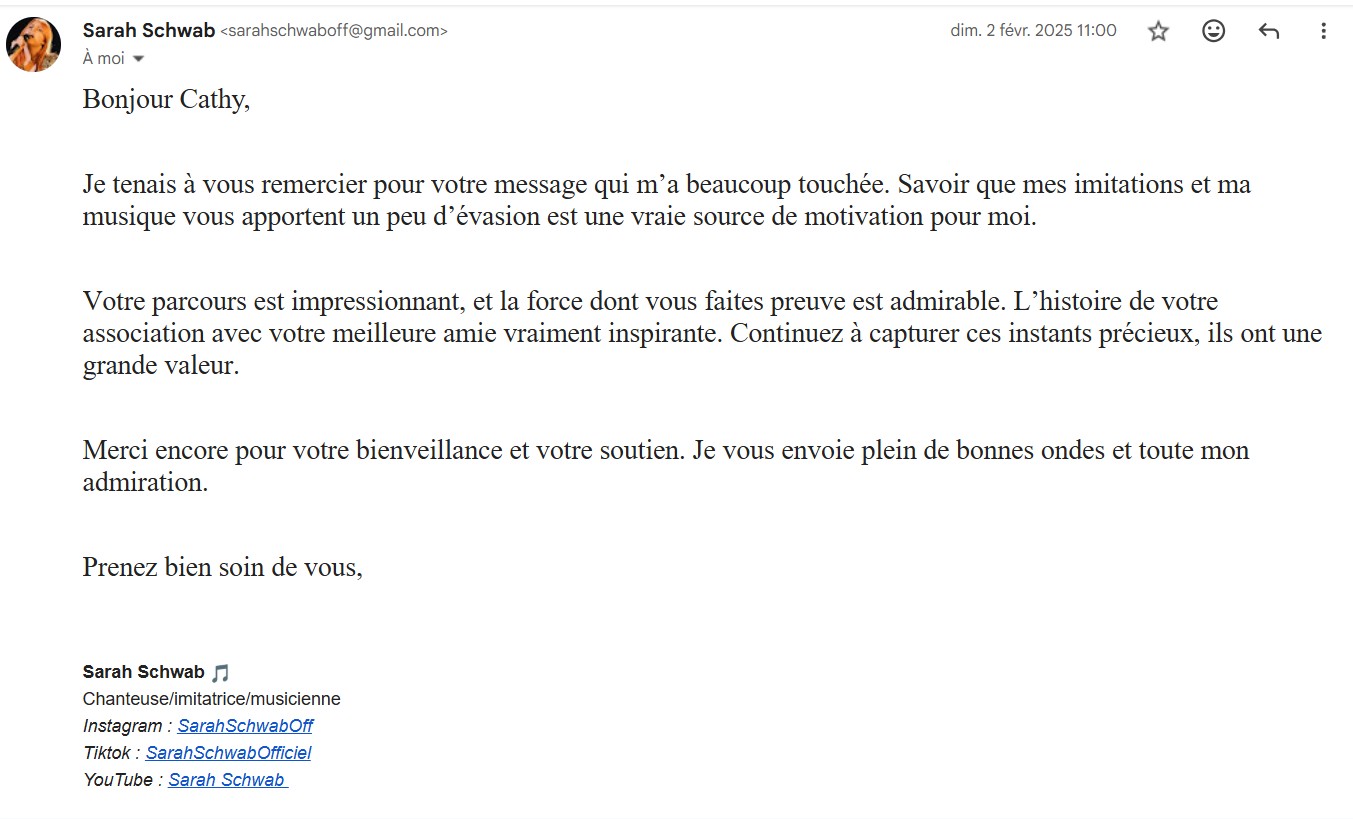 Mme Sarah Schwab, Chanteuse Française et imitatrice de talent.